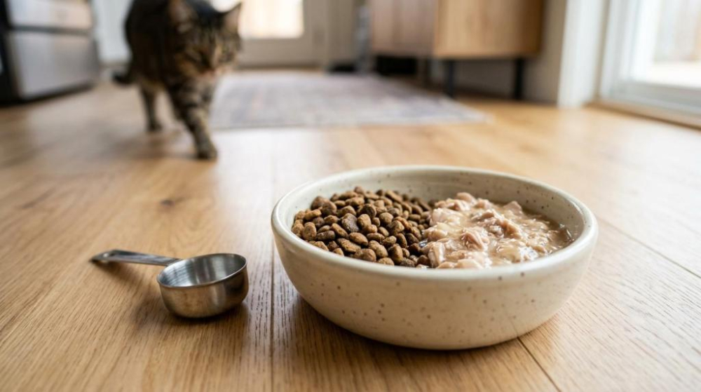 - Foderform: vådfoder kan være en fordel, hvis katten drikker lidt eller reagerer på tørre måltider