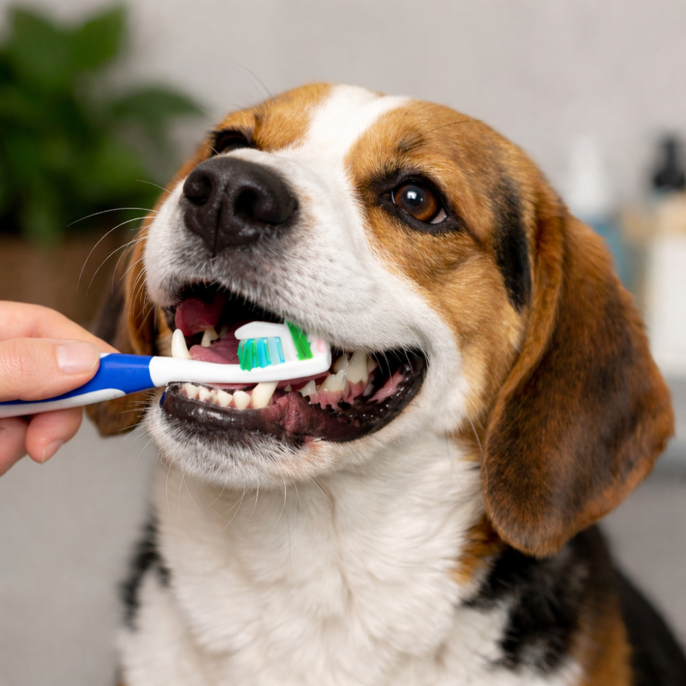 Ligesom hos mennesker er daglig tandbørstning den mest effektive metode til at fjerne plak og forebygge tandsten.